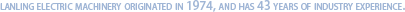 蘭菱機電 起源于1974年,至今已有44年行業(yè)經(jīng)驗。